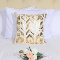 PiccoCasa Gold Geometric Pattern Modern Square Throw Pillow Cover Gold White 18″x18″