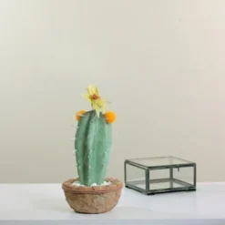 Northlight 12″ Flowering Cactus Artificial Potted Plant – Green/Brown