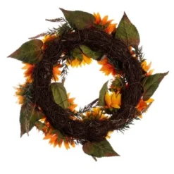 Vickerman 24″ Artificial Yellow Sunflower Wreath With Green Fern Foliage.