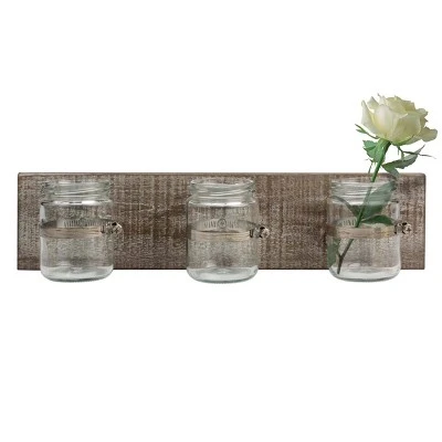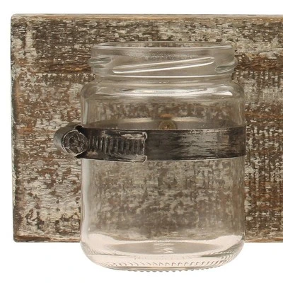 Add a bit of rustic flair to your home decor that is not only decorative but comes with many uses with a Stonebriar 15.4″ x 3.8″ rustic wooden wall decor with 3 glass jars. This unique wall decoration features a rustic worn natural wood base with a white wash finish and 3 small glass jar containers. Wall decor piece is multifunctional can be used to organize an office or art supplies, display bathroom cosmetics and accessories, or plant herbs and small flowers. Stonebriar wall decor piece comes with 2 metal hangers and is easily installed with screws or wall hooks (Not included).
