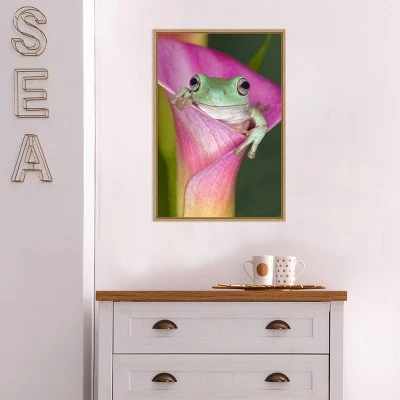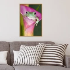 ART DESCRIPTION: When one is only an inch tall, a calla lily is a perfect place to pause for a minute to think. Fortunately, the mossy green of this Australian green tree frog provides harmonious contrast to the fuchsia coloring of the lily. This Amanti Art canvas art print was created by Adam Jones Danita Delimont and printed by Amanti Art in Madison WI. The canvas is stretched by hand and finished with a float frame. Individually made using traditional custom framing techniques, it has the quality you would expect from your local frame shop. Because of our attention to detail and focus on artistry, architects, interior designers, and homeowners alike choose this framed canvas artwork to create beautiful living spaces.