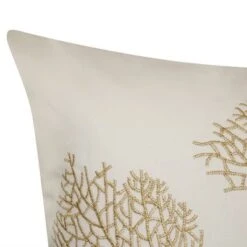 - The chic Embroidered Printed Coral Outdoor Pillow features understated coral embroidery in rich cream and gold
