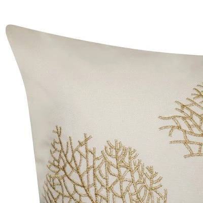 The Edie@Home Outdoor Pillow Collection combines fresh, stylish designs and high-quality fabrics made to withstand the elements of the outdoors. This elegant Edie@Home Embroidered Printed Coral Outdoor Pillow features subtle coral embroidery in cream and gold to complement your decor. Each plush decorative throw pillow measures 18×18. Can be used indoors or outdoors. Easy spot clean. Stitched closure. 100% Polyester.