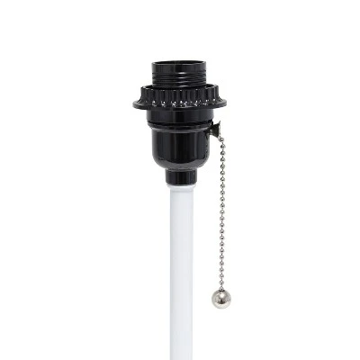 - Powered on by a pull chain located on the socket of the lamp and includes a 5′ white plug in cord
