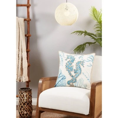 Perfect for summer décor or coastal homes, the charming Sea Horse Throw Pillow instantly transforms any room. The navy blue rich design creates a beautiful depth and adds texture to any sofa or armchair. The playful pillow is soft, yet durable, made with 100% quality cotton, ideal for lasting use.