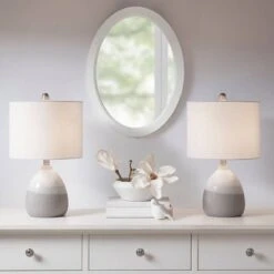 Update your space with the sleek style of the 510 Design Driggs Ceramic Textured Table Lamp. The base is made from ceramic with a painted Ivory/Gray and white finish for a sleek gradient look. The drum shaped white shade softly filters the light, while also beautifully complementing the striking look. This table lamp is easy to incorporate into your existing space and perfect for accenting any living room or bedroom. One Type A light bulb is needed and included. Comes with a 2-year warranty.