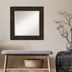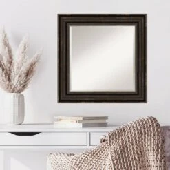 - MIRROR DETAILS: This mirror features premium glass for a clear, undistorted image and is finished with a beveled edge to give the glass a decorative touch. The overall size of this wall mirror measures 26.25 x 26.25 inches, including the frame. Its reflective area measures 20 x 20 inches.