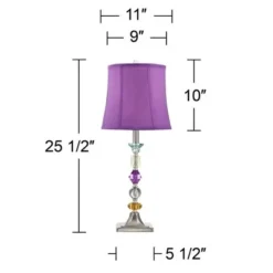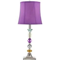 - Purple fabric lamp shade up top adds a fun splash of color. 7-foot long cord.