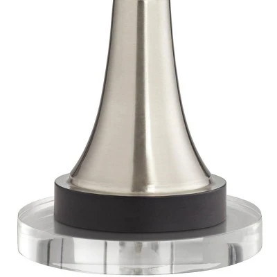 Offering the modern convenience of touch lighting, this set of two LED table lamps are from 360 Lighting. Delivering energy-efficient lighting, the set features black finish disc bases with metal hourglass columns. Drum shades complete each lamp. The base of each table lamp is augmented with a built-in USB port for quick and easy charging of devices and accessories. Each lamp has a 7″ round riser.