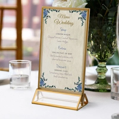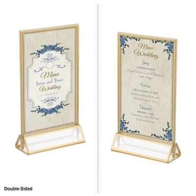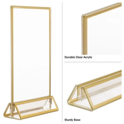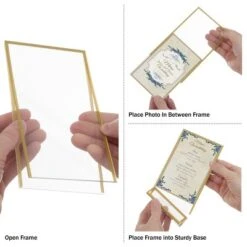 - MULTIPURPOSE DISPLAY – This gold frame set can be used for a variety of events, including weddings, showers, and birthday parties, or use these acrylic stands for display on restaurant tabletops or for showcasing family photos on your mantle.