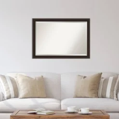Give your home or office the finishing touch with this 100% real wood Beveled Wall Mirror framed with the Romano Espresso Narrow frame. Individually made using traditional custom framing techniques, it has the quality you would expect from your local frame shop. It holds its value with premium finishing that can be appreciated up close. Because of our attention to detail and focus on artistry, architects, interior designers, and homeowners alike choose this mirror to create beautiful living spaces.