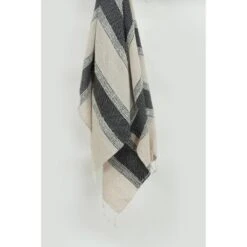 This lightweight throw is a wonderfully crafted piece of wearable art. Hand loomed with patterns of a soft chevron inset into a general stripe pattern with hand applied accent stitching, this throw can be worn as a chill chasing evening wrap or draped across your favorite reading chair. The warp is hand tassel tied for a completely organically crafted look.