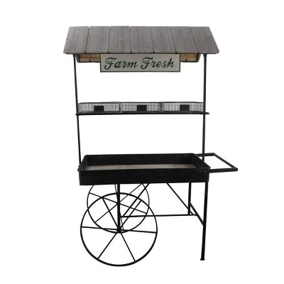 - DECORATIVE METAL GARDEN CART: Features a farmhouse-inspired design with wood-paneled roof and “Farm Fresh” sign