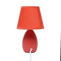A petite table lamp set, each made primarily of ceramic with its oblong base shape sits beneath a matching colored tapered fabric shade for an overall effortlessly styled lamp suited for both your décor and lighting needs. A number of color options are available in this style, to compliment your decor just right.