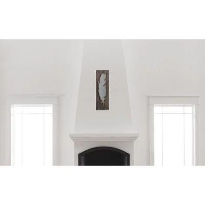 Our Metal Feather Wall Sculpture adds a rustic touch of intrigue to your space. A long feather crafted of metal is given a distressed white finish with rust-style edges for the look of a flea market find or reclaimed relic. This feather decor is mounted to a simple wood board, completing the casually stylish design.