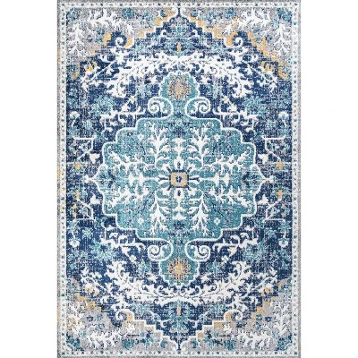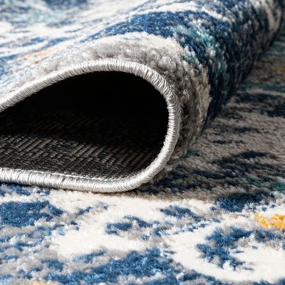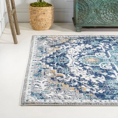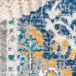 With its gray tones, this medallion rug adds Bohemian style to a living room, bedroom, entry or kitchen. Black geometric accents on a soft cream background give this rug a hand-woven, vintage vibe. The busy allover pattern is pet-friendly and great for kids too.