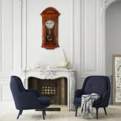Bedford Clock Collection offers you the elegance and beauty of classic style with the modern reliable technology of today’s wall clocks. Whether a gift to your self or for someone else, this clock will add a special touch of sophistication to any room. With its stunning Padauk Oak finish, Golden Accents and Swinging Pendulum, this wall mountable time piece is not only an attractive focal point, but a functional and reliable piece of technology. With 4 distinct Chimes, the clock will announce the beginning of each new hour for your convenience. Carved details and special touches through out , as well as a convenient Sleep Mode that provides you with the option to pause the melodic chimes of this beautiful time piece for an entire 12 hour period with a simple push of your finger.
