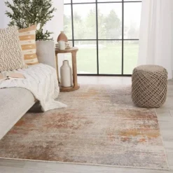 A complementary mix of vibrant and natural tones combine to create the effortlessly stylish Terra collection. Space-dyed polyester lends a unique colorway and subtle, dimensional sheen to the stunningly detailed design. The versatile Berquist rug grounds any space with an ethereal abstract pattern in neutral and earthy hues of gray, tan, gold, ivory, and orange.