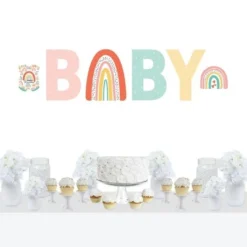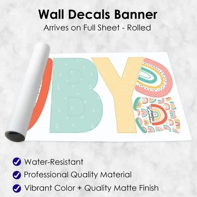Hello Rainbow Standard Banner Wall Decals include 1 sheet of vinyl sticker letters that spell “Baby” and 1 Rainbow and 1 Baby Body Suit shapes that will look great as part of your Baby Shower Party decorations. Wall Decal sheet measures 50 inches wide by 16.5 inches tall. Pieces range in size from 12.75 x 15.5 inches to 8.25 x 6.75 inches. Effortless Decor: Hang the Hello Rainbow letters next to each other to form a party banner. They can be hung vertically or horizontally and will add some extra charm to your party space within minutes! Use the wall decal banner at your entryway, over the food table, or on a photo booth backdrop. Easy to Use: Pastel Rainbow vinyl decals are easy-to-peel and repositionable. Wall art stickers will adhere to various surfaces including painted walls, plastic, wood, glass, and metal. To use, make sure your surface is clean and dry. Slowly peel the sticker from the paper to avoid tearing and smooth over with your hand. They are also easy to remove, leaving no residue. High-Quality Supply: Boho wall stickers come with a quality matte finish and vibrant colors. They are printed on water-resistant professional quality material and will arrive on one full sheet rolled. Made In The USA: Hello Rainbow Wall Decals are designed and manufactured at our Wisconsin facility using materials that are Made in the USA.
