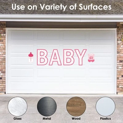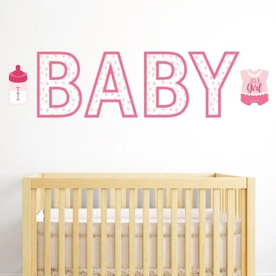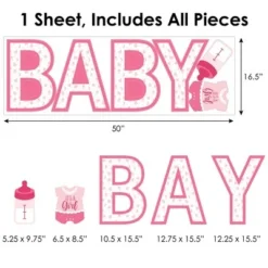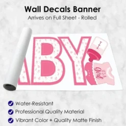 It’s a Girl Standard Banner Wall Decals include 1 sheet of vinyl sticker letters that spell “Baby” and 1 Baby Bottle and 1 Baby Body Suit shapes that will look great as part of your Baby Shower Party decorations. Wall Decal sheet measures 50 inches wide by 16.5 inches tall. Pieces range in size from 12.75 x 15.5 inches to 9.75 x 5.25 inches. Effortless Decor: Hang the It’s a Girl letters next to each other to form a party banner. They can be hung vertically or horizontally and will add some extra charm to your party space within minutes! Use the wall decal banner at your entryway, over the food table, or on a photo booth backdrop. Easy to Use: Girl vinyl decals are easy-to-peel and repositionable. Wall art stickers will adhere to various surfaces including painted walls, plastic, wood, glass, and metal. To use, make sure your surface is clean and dry. Slowly peel the sticker from the paper to avoid tearing and smooth over with your hand. They are also easy to remove, leaving no residue. High-Quality Supply: Pink and White wall stickers come with a quality matte finish and vibrant colors. They are printed on water-resistant professional quality material and will arrive on one full sheet rolled. Made In The USA: It’s a Girl Wall Decals are designed and manufactured at our Wisconsin facility using materials that are Made in the USA.