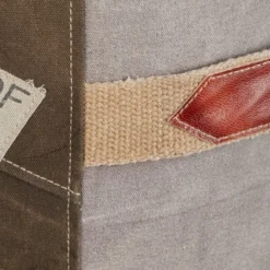 - •This canvas and leather pouf features a round shape with star-shaped pattern