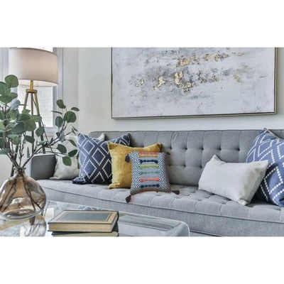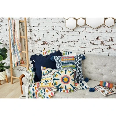 With its collection of vibrant colors and patterns, the Ciara Pillow brings good vibes to any bed, sofa, bench, or chair. Its unique combination of textures, yarn tufts, and large corner tassels makes this ladder woven throw pillow a great addition to any modern Southwest style bedroom or eclectic living room.