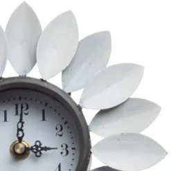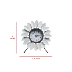 Keep track of time in style with the White Flora Tabletop Clock from Foreside Home and Garden. Featuring brilliant white petals and gorgeously detailed hands, the Flora Tabletop Clock adds a bit of beautiful elegance to any space. This clock’s slim feet allow it to sit beautifully on any surface.