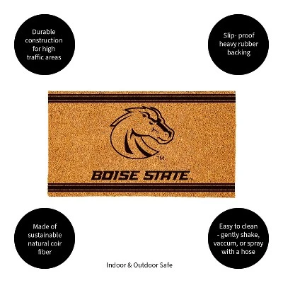 - Measures 28 x 16 inches. Step up your school spirit with this Boise State University Logo Turf Mat.