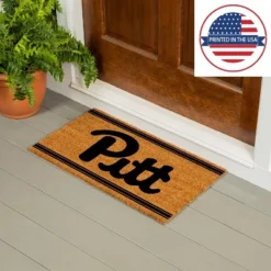 - Measures 28 x 16 inches. Step up your school spirit with this University of Pittsburgh Logo Turf Mat.