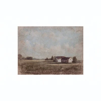 - This serene piece of wall art showcases a distressed pastoral landscape printed on canvas