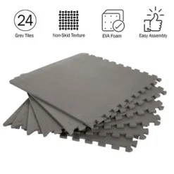 - FOAM FLOOR TILES 24-PACK – These EVA foam floor mats provide 96-square-feet of protective coverage for flooring in your home gym, garage, or family room. Create a comfortable space for fitness routines and workout equipment or a safe play area for kids.