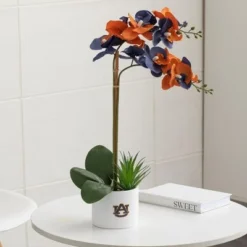 - Effortless Team Pride: Flaunt your Auburn pride without the need for extensive maintenance. This artificial Orchid maintains its vibrant appearance without watering, sunlight, or pruning, allowing you to showcase your university loyalty with minimal effort.