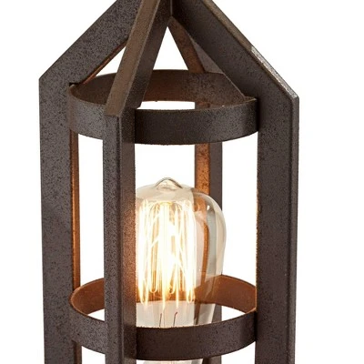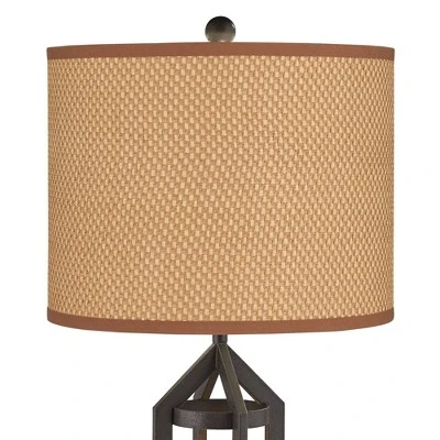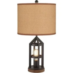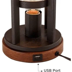 Franklin Iron Works Lucas Industrial Table Lamps 26″ High Set Of 2 Bronze With USB Charging Port Nightlight LED Peanut Drum Shade For Bedroom Desk