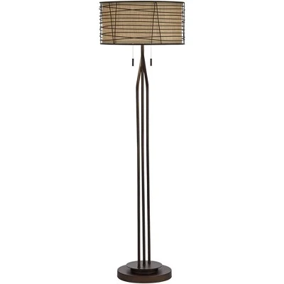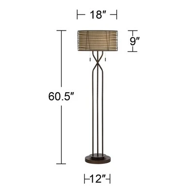 Franklin Iron Works Marlowe Rustic Farmhouse Floor Lamp 60 1/2″ Tall Bronze Metal Oster Woven Burlap Fabric Inner Drum Shade For Living Room Bedroom