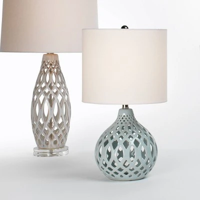 Light and airy, breathe new life and illumination to a reading nook, nightstand, desk or entryway with this tabletop lamp. Handcrafted by skilled artisans, this ceramic lamp features a woven filigree pattern that creates depth and dimension as light passes through. Topped off with a linen shade for a clean, fresh feel.