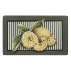 What’s Included: (1) Kitchen Mat Dimensions: 30 in. W x 18 in. L Fabric Content: ECO PVC Memory Foam Style: Kitchen Mat Design: Assorted Features: Resilient Foam Reduces Fatigue, Supportive Foam Layer Conforms to the Contours of Your Feet, Beveled Edges Care Instructions: Clean with brush, broom, vacuum or shake briskly. Occasionally rinse with a garden hose. Air Dry. Weight: 2.9 Lbs