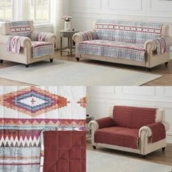 Summon the spirit of the Great Southwest with the Kiva collection from Greenland Home Fashions. Enhancing your Boho surroundings, Kiva features Native American art motifs in neutral colors to coordinate with a wide variety of interior dĂ©cor themes. Distressed effect gives a rustic, stone washed appearance for relaxed, casual living. Reverses to an all-over apple butter brown. Mix and match reversible furniture covers for variety and convenience. Big enough to provide ample coverage on most home furniture. Reversible protector is printed on one side with a complimentary print on the other for two looks in one. Elastic strap holds protector in place on your furniture. Protect your furniture from spills, pet hair, paws, wear and tear with these generously-sized furniture covers. Overall dimensions: Armchair Protector 81×81 inches; Loveseat Protector 103×76 inches; Sofa Protector 127 inches x 77 inches; all dimensions +/- 2 inches. 100% brushed microfiber polyester face and back with 100% polyester fill. Machine washable. Machine washable. 100% brushed microfiber face and back with polyester fill. Imported.