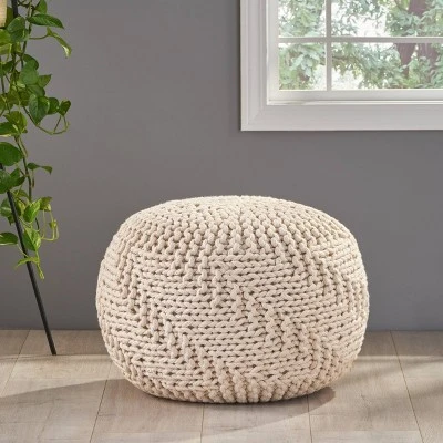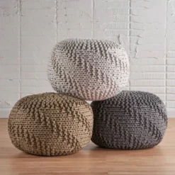 This Christopher Knight Home Hazel Pouf Ottoman with its dark variant, draws attention to any arrangement with its cool monochromatic color and dramatic style of stitching. An accommodating surface tone encourages versatile household placement, while interwoven surface strands exhibit an intricate hand knit design that refines the essence of this boastful pouf’s aesthetic. Put your feet up after a long day or use as extra seating with this Christopher Knight Home Hazel Pouf Ottoman the possibilities are endless. A must have purchase!