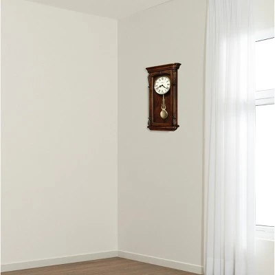 - WALL CLOCK: This Henderson Wall Clock features a Hampton Cherry finish on select hardwoods and veneers to complement your home decor. It has elaborately carved column caps and carved accents on the door, with a brass lyre and grid pendulum.