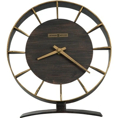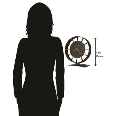 - Unique Style: This antique mantel clock features modern facets alongside traditional aspects with its curved base and circular and wedged metal shapes, which make for the hour markers. The clock is finished in brown with reddish undertones and gold highlights on the front of the frame and the hour markers, contrasted with the hour and minute hands in an antique gold finish. The dial is supported by a flat center disk that is joined to the outer case with the wedged metal hour markers.