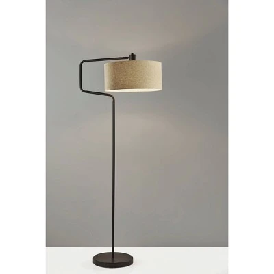 Clean lines and a modern, short drum shaped shade update the classic swing-arm style of the Jacob Floor Lamp. A mix of bronze metals and natural materials add a farmhouse element. The light brown shade is woven from natural materials, revealing a unique and beautiful texture when lit. Swing the arm to focus light where you desire. Bulb is not included.