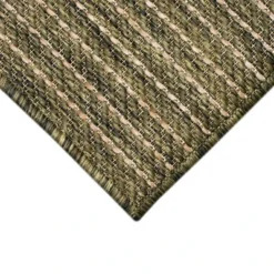 This colorful traditional flatweave area rug features stripes that appear to be part of the weave. A deep green background is gently broken up by subtle lines stretching from end to end along the rug. This striking rug is perfect for welcoming guests in your entryway, living room or as a stylish detail on your outdoor patio. Made in Turkey from 87% Polypropylene/13% Polyester, this performance collection is Power Loomed to create subtle, naturally beautiful multi-toned detailed designs with a high-quality finish. The material is flatwoven, UV stabilized, fade resistant, durable and ideal for those high traffic areas such as your patio, deck, kitchen and living room making this the perfect indoor or outdoor rug. A fresh take on traditional area rugs, patterns range from tropical, coastal, contemporary and classic to seamlessly tie together the design of your home. Limiting exposure to rain, moisture and direct sun will prolong rug life.