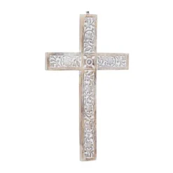 - Wall decor cross is made of mango wood body with floral carvings