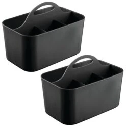 The mDesign Office and Desk Storage Caddy Bin creates a neat and tidy workspace. Use it in the office, at school, in your art studio, or in a garage work shop. Built-in handle makes it easy to transport. Keep all of your office supplies organized and easy to find. These versatile containers are great in any room of the home – many use them in the shower to hold shampoo, soap, razors or in the kitchen storing silverware utensils. Drainage holes make this the perfect portable bath caddy for dorm rooms. mDesign – more calm, less clutter