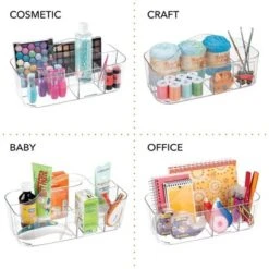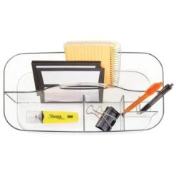 Sort and organize your home office desktop, shelves, and closets with this Portable Storage Caddy Tote by mDesign. This portable tote features six divided sections that provide plenty of space to store your pens, dry erase markers, highlighters, notebooks, paper clips, staples, highlighters, sticky notes, and more in one convenient place. The built-in handle makes moving in and out of cabinets hassle-free. The open top makes it easy to see what’s stored inside. mDesign – Solutions for Home. Solutions for Life.