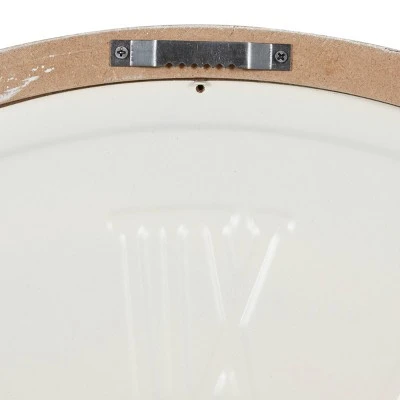 - •This white round wall clock is cut with angle on the edge to create a two-layer look and has a wooden backboard that it screwed to the frame to hold the parts in place