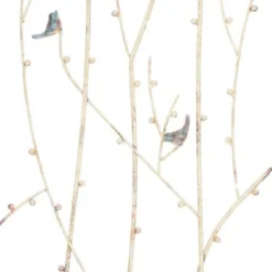 - Floral wall decor carries soft metallic pops of green, yellow, and blue that brighten up any space