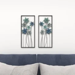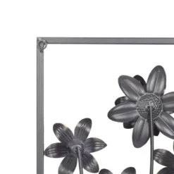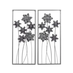 This floral set of wall decorations are ideal for spaces with light-toned interiors that attract natural light. This item ships in 1 carton. Give your wall some life and depth with this botanical wall sculpture décor. Can be hung vertically using the metal rings on the back; nails and screws not included. Suitable for indoor use only. This item ships fully assembled in one piece. This gray colored wall sculptures comes as a set of 2. Traditional style.