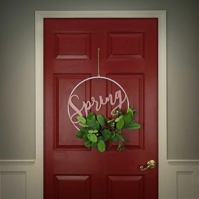 - Includes one artificial hanging wall decoration that measures 23 inches in length, 20 inches in width and 6 inches in height and features an open metal wire ring that holds the word “Spring” lettered in a flowing metal script