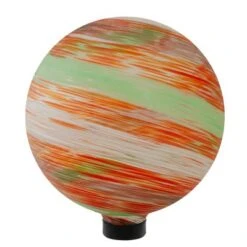 Add a pop of color and whimsy to your outdoor space with this garden gazing ball. The intricate swirl design creates a mesmerizing visual effect that is sure to captivate your guests and add a unique touch to your garden or patio. Whether you’re enjoying a quiet moment of reflection or hosting a lively outdoor gathering, this gazing ball is sure to bring joy and inspiration to your outdoor oasis.Product Features:Orange and white swirled gazing ballCan be filled with lights for an added touch of flairStand not includedRecommended for indoor and outdoor use Dimensions: 10″ diameter Material(s): glass